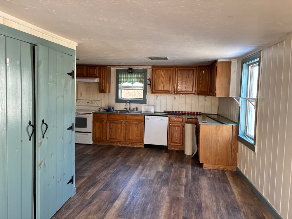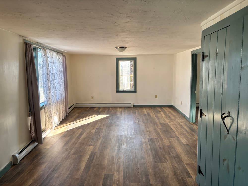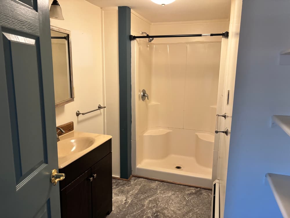 This two bedroom apartment is located on the 2nd floor. You enter into the bright and cheery living room. In the kitchen you will find beautiful wood cabinets and a built in dishwasher. Laminate flooring makes the apartment easy to keep clean. An area rug will make it feel like home. The bathroom includes a nice walk-in shower. There is a stacking washer/dryer in the apartment which means no more trips to the laundromat. The rent includes heat, off-street parking, trash, lawn care and snow removal. This building is located on the shores of the Sandy River.
